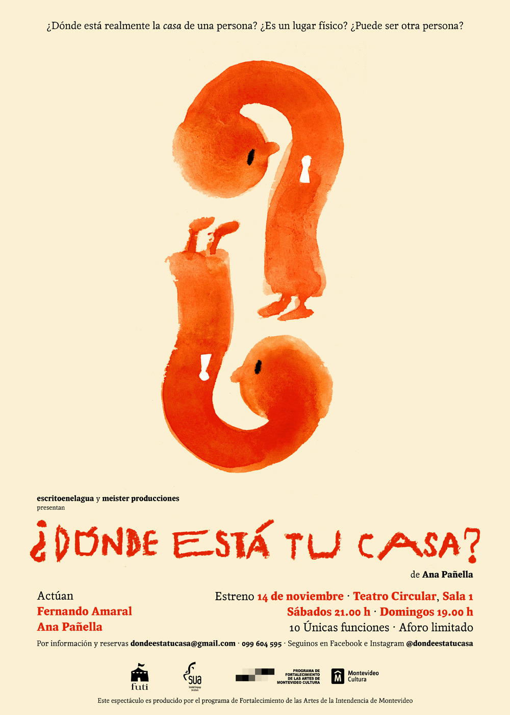 Por información y reservas: dondeestatucasa@gmail.com / Whatsapp 099 604 595, o en boletería del teatro Circular, en Av. Rondeau esquina Colonia. El aforo es limitado y se debe concurrir con tapabocas.