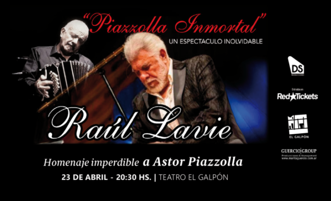 El recordado y querido artista argentino Raúl Lavié se presentará en Montevideo, el jueves 23 de abril en la Sala Campodónico de El Galpón, con su espectáculo “Piazzolla Inmortal”, a las 20.30 horas, las entradas ya están a la venta.